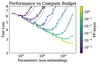LM은 아마 model architecture나 LM의 크기, computing power, 학습 단계에서의 사용가능한 data등 여러가지에 영향을 받는 것으로 보입니다. 해당 논문에서는 이러한 요소들과 LM의 loss와의 관계를 경험적으로 확인해봅니다.