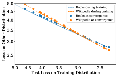 model의 크기와 상관없이 학습 곡선은 예측가능한 power-law를 따릅니다. 즉, 초기 학습 곡선을 예측하는 것을 통해 우리는 학습을 더 한다면 어느 loss값을 기록할지 대략적으로 예측할 수 있습니다.