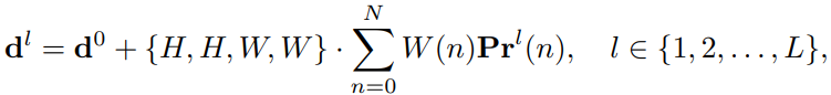 initial bbox를 b0라고 했을 때, 초기 distance d0는 b0의 중심 c0로부터의 top, bottom, left, right edge의 거리로 초기화합니다. 이때 l-th layer에 대해 bbox는 다음과 같이 예측됩니다: