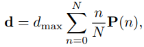 dmax는 분포의 최대값, N은 bin의 개수, P(n)은 예측한 좌표값이 n번째 bin에 속할 확률입니다. 예를 들어, dmax는 10, N=5 이라고 했을 때, P(n) = [0.05, 0.1, 0.15, 0.6, 0.1] 이라고 가정합니다. 그러면 dmax는 해당 모델이 예측할 수 있는 최대 좌표를 의미합니다. N은 구간의 개수로, 각 구간은 [0,2], [2,4], [4,6], [6,8], [8,10] 입니다. 이때 P(n) = [0.05, 0.1, 0.15, 0.6, 0.1] 이기 때문에 각 구간에 속할 확률은 P([0,2]) = 0.05 ... 과 같이 해석할 수 있습니다.