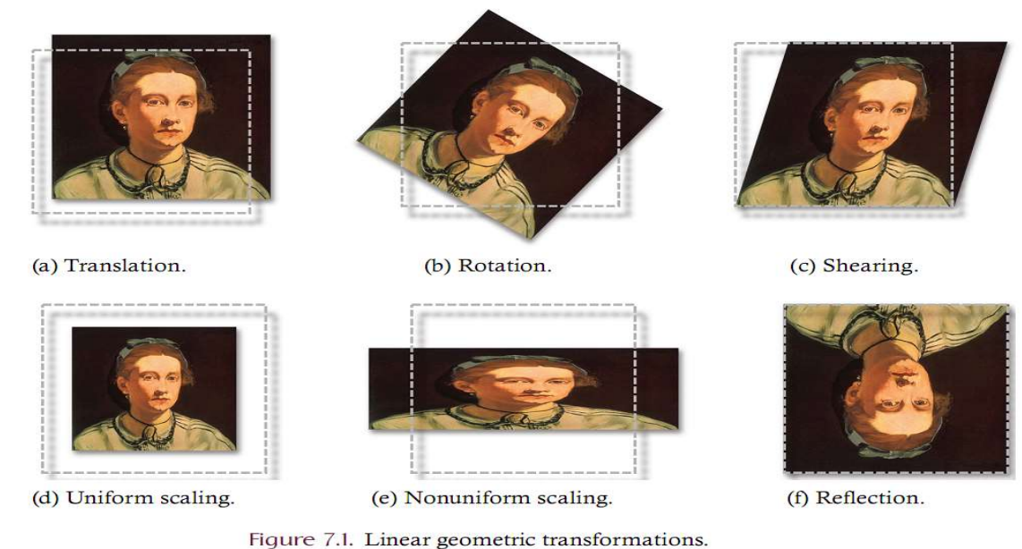 Affine Transformation은 직선을 직선으로, 평행선을 평행선으로 유지하는 변환을 말합니다. 회전, scaling, shearing, shift 모두 affine transformation에 포함됩니다.