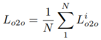 multiple set의 random perturbation은 queries의 특징을 다양화하여, 동일한 target과 연관된 여러 관련 queries들이 positive sample queries로 할당될 기회를 갖게 하고, 그에 따라 supervision 정보를 풍부하게 합니다. 학습 중에는, 여러 세트의 object queries들이 concatenation되어 단일 decoder branch로 입력되므로, 파라미터 공유를 가능하게 하고 학습 효율성을 높입니다. loss 계산과 라벨 할당은 RT-DETR과 일관되게 유지됩니다. i-th set의 loss를 L_i^{o2o}로 표기하며, N개의 perturbation set에 대한 총 loss는 다음과 같이 계산됩니다: